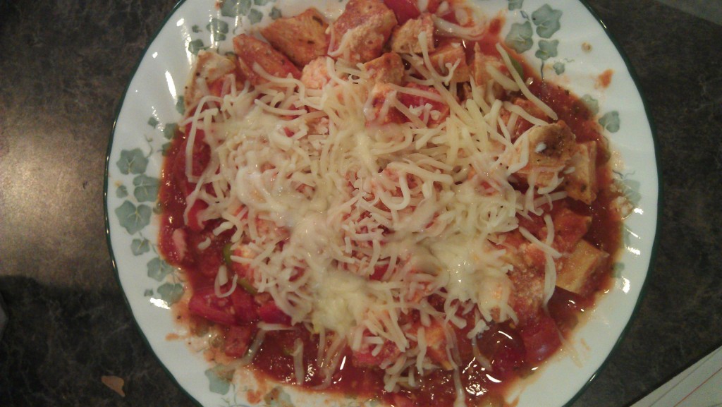 I was heavy on calories today, I consumed 2,596 calories. Dinner was Italian night. Mini pizza and chicken Parmesan.